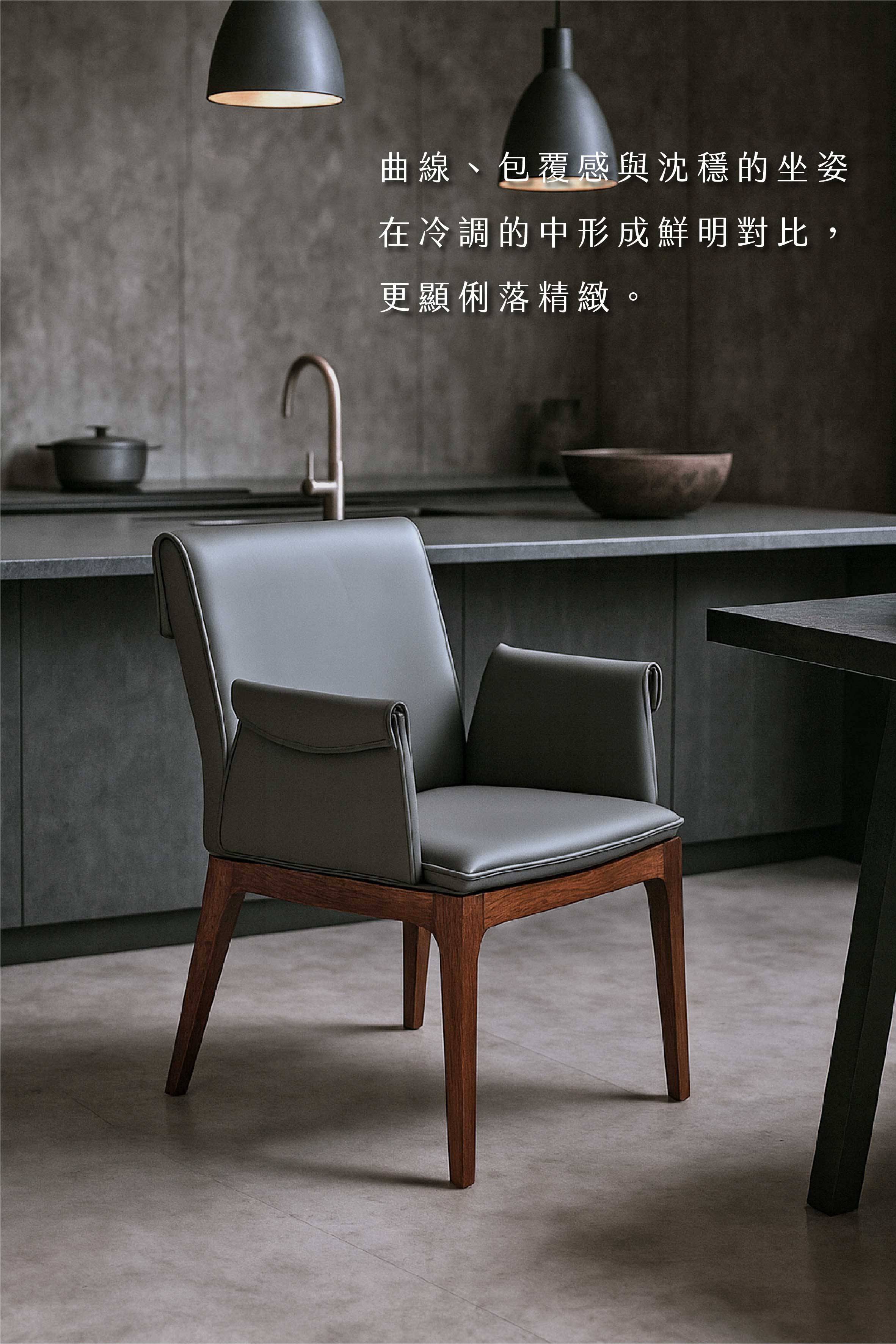 符合人體工學的舒適坐墊及恰到好處的扶手設計,在不斷的調整中,確保使用者長時間使用依然能保持靈活與舒適,是一張適合久坐的餐椅。